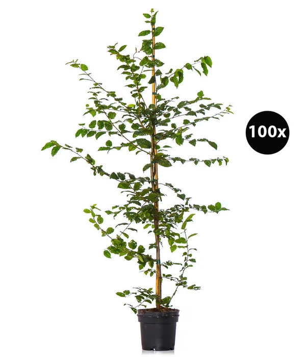 Wenn Sie eine besonders robuste, winterharte Heckenpflanzen suchen, sind die 20 Meter Hainbuche die richtige Wahl. Setzen Sie die Pflanzen mit einem Abstand von ca. 20 cm, also 5 Pflanzen pro laufenden Meter, und schon bald werden Sie auf eine dichte, grüne Hecke blicken. Hainbuchen wachsen in der Sonne wie im Schatten, idealerweise in einem humosen und durchlässigen Boden. Die einzige Pflegemaßnahme, die Sie der 20 Meter Hainbuche nicht abschlagen sollten, ist der regelmäßige Formschnitt. In der Regel wird im Juni geschnitten, falls Ihre Hecke besonders wuchsfreudig ist, können Sie ruhig ein zweites Mal im August oder im Februar zur Heckenschere greifen.
