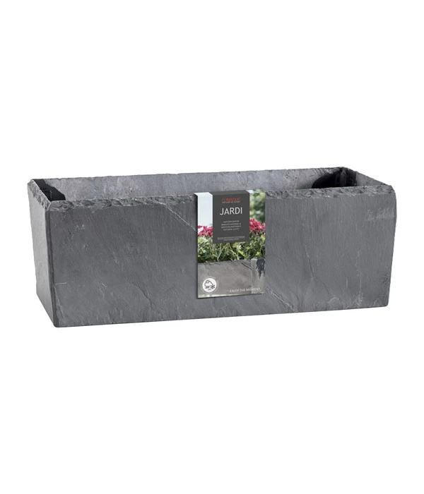 Der rechteckige Climaqua Schiefer-Kasten Jardi ist ein Blumenkasten der ganz besonderen Art. Er besteht aus echtem Naturschiefer, dessen Entstehung schon ca. 400 Millionen Jahre zurückliegt. Dieses urtümliche Gestein wirkt natürlich und elegant in Ihren Innen- und Außenbereichen. Wenn Sie den schicken Schiefer-Kasten im Innenbereich aufstellen wollen, nutzen Sie hierfür einen Untersetzer. Wenn Sie ihn im Außenbereich platzieren, vermeiden Löcher im Boden und eine Bodenerhöhung ganz einfach Staunässe unter dem Kasten. Sie werden bemerken, wie edel dieser außergewöhnliche Blumenkasten im Schweizer Design auf die Umgebung wirkt.