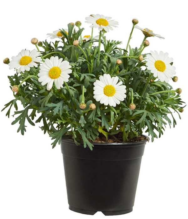 Die Margerite ist ursprünglich auf den Kanarischen Inseln beheimatet und obwohl dieser buschig wachsende Korbblütler in unseren Breiten nicht winterhart ist, zählt die Margerite, neben Geranien und Petunien, zu den beliebtesten Beet- und Balkonblumen. Als hübsche Wildblume sieht man sie oft auf bunten Wiesen weiß leuchten, doch auf Balkon und Terrasse umhüllt sie uns mit einem mediterranem Flair. Mit unentwegten Blütenzauber und einer unglaublichen Blütenfülle bringt sie uns sommerliches Feeling ins Haus, sodass Urlaub auf Balkonien schöner sein kann, als sich mancher vielleicht vorstellen kann. Dabei Bedarf es noch nicht einmal an gärtnerischen Kenntnissen, um in den Genuss der weißen Blütenpracht zu kommen.